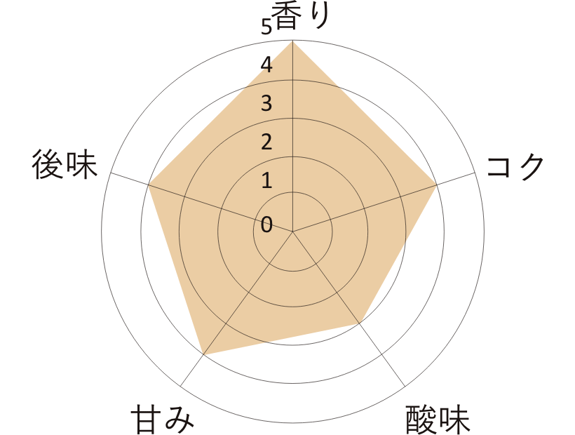 香りから個性が際立ち、やわらかな口当りのあとに、果実を思わせる酸味と焦がし味噌を彷彿とさせる甘く香ばしいコクが広がります。