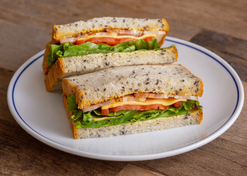 黒ごまの香ばしい風味が広がる、しっとりふわふわ食感のエスプレッソアメリカーノ特製食パンを使用したサンドイッチメニューです。