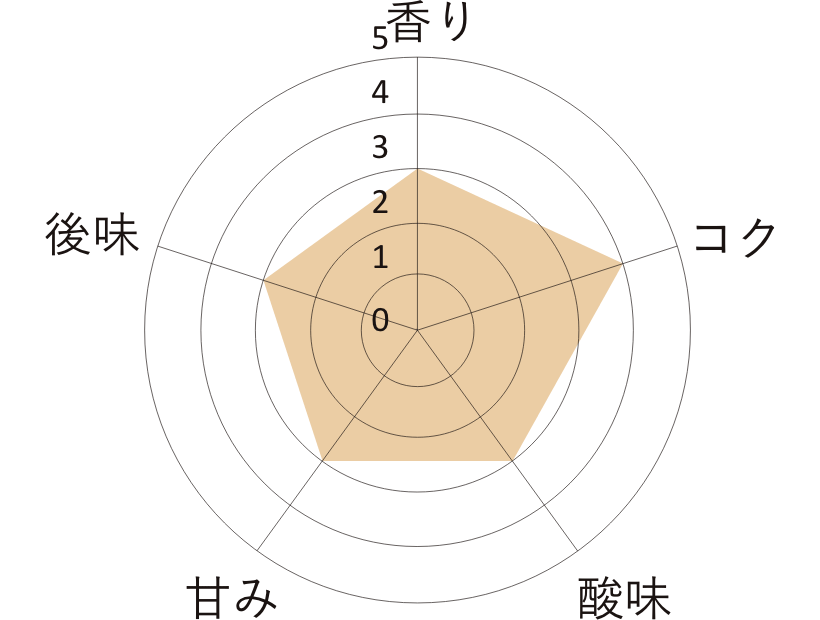 プルーンを思わせる甘酸っぱさとローストナッツのような軽やかなコク、カラメルやウイスキーを思わせる芳醇な風味。