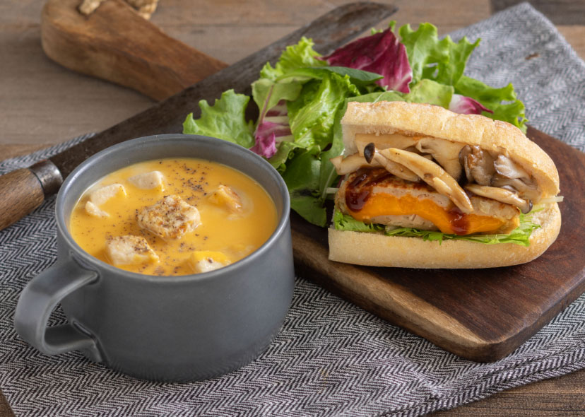 日替わりスープ・お好きなサンドイッチのハーフサイズ(季節サンドのみ+¥110)